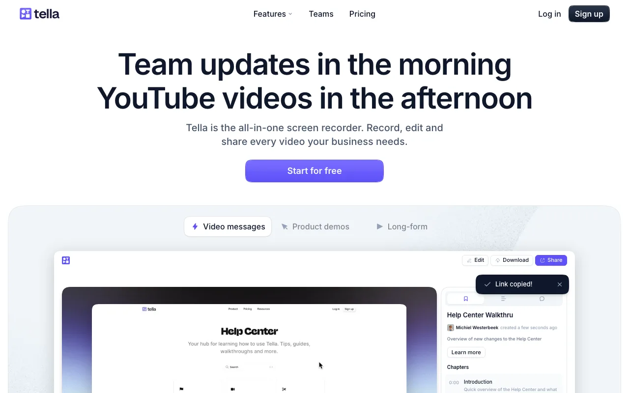 Tella: Best Async Video Platform for Remote Teams Replacing Loom